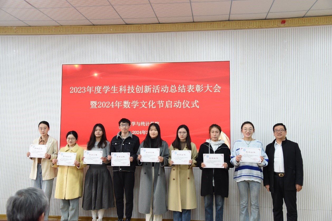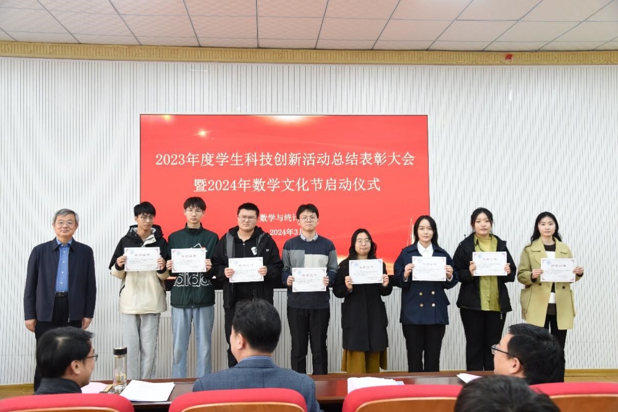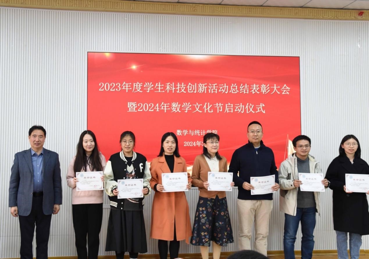 大会伊始,副院长周兆杰、刘红星分别宣读了《数学与统计学院2023年度学生科技创新活动获省级以上奖项》和《关于表彰2023年度学生科技创新活动优秀个人的决定》。党委副书记葛海滨宣读了《关于表彰2023年度学院学生科技创新活动优秀指导教师的决定》。
