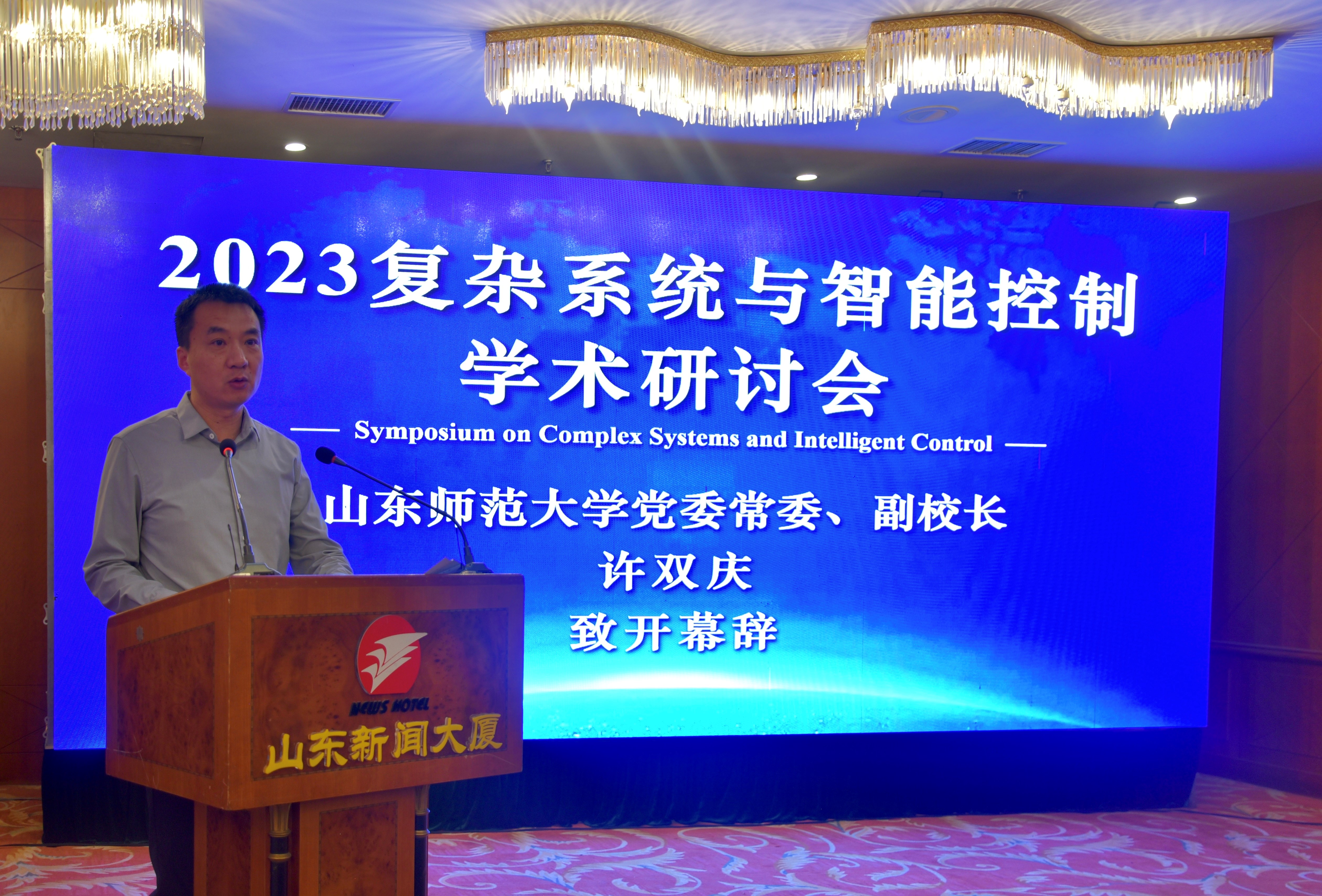 5月19日至21日,由山东师范大学数学与统计学院主办,山东省高校控制与工程计算特色重点实验室及加拿大Waterloo大学应用数学系协办的“2023年复杂系统与智能控制学术研讨会”在山东济南顺利召开。山东师范大学副校长许双庆,加拿大Waterloo大学终身教授、山东师范大学讲座教授刘新芝,山东师范大学数学与统计学院党委书记战秉聚等出席会议。会议开幕式由山东师范大学数学与统计学院院长李晓迪主持。