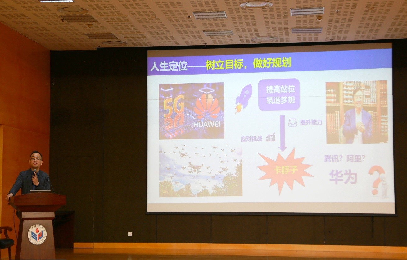 李晓迪教授的报告主要从“人生定位”、“专业介绍”、“团队介绍”以及“结束寄语”四个方面展开。他首先以南开大学胡广辉教授、华为创始人任正非以及港珠澳大桥总工程师林鸣等人从立志到践行的奋斗史为例,并结合自身二十年来科研路上的风风雨雨,勉励同学们珍惜时间,树立目标,做好规划,在低谷时保持科研自律,锤炼自身,厚积薄发。