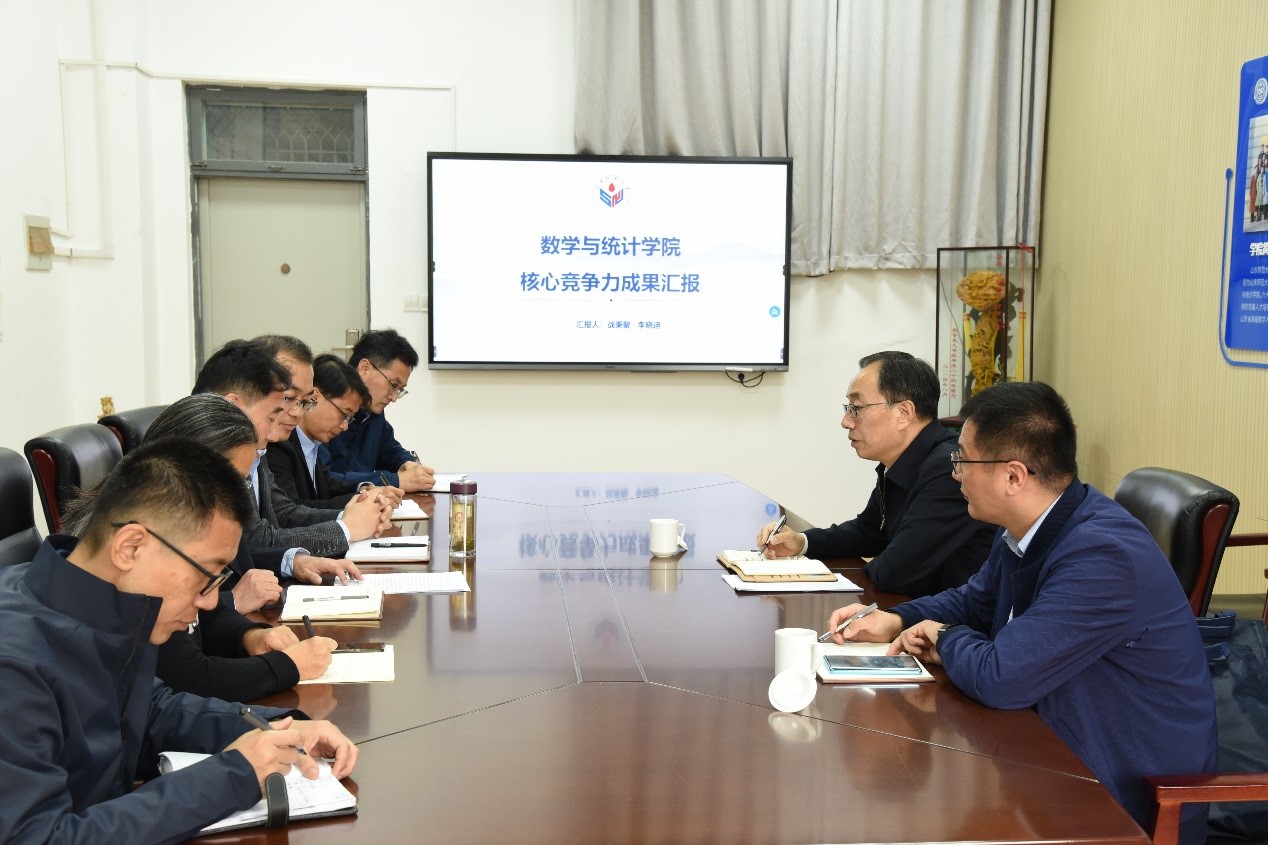 冯继康对学院取得的工作成绩给予充分肯定。指出,数学学科历史悠久,基础扎实,综合实力强,学院发展定位明、目标准。强调,学院要持续加强基层党的建设工作,促进与教学科研工作、教书育人工作、学科发展的有效融合,充分发挥好基层党组织战斗堡垒作用;要进一步明确学院的发展思路,分析巩固优势,找准补齐短板,围绕课程设置、师资聘任、人才培养、质量监督等方面发力,努力冲击一流;要继续凝聚发展共识,锐意进取、不断创新,形成推动学院改革发展的强大合力,为学校“双高”建设作出更大贡献。