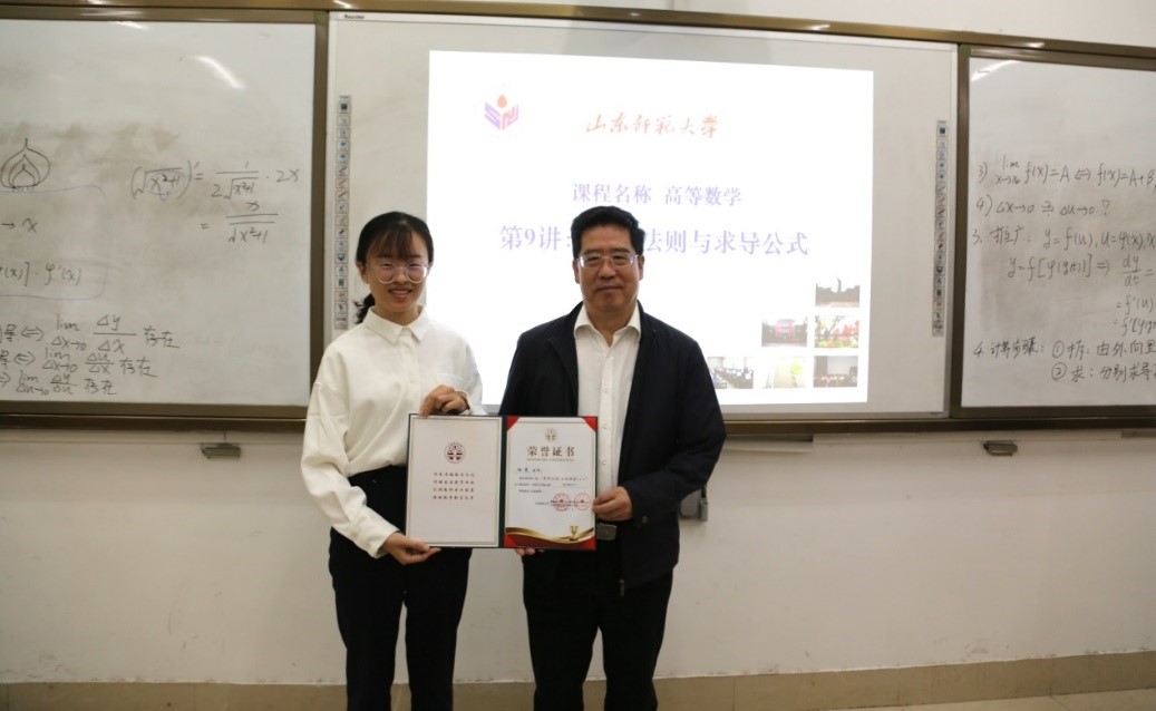 10月19日上午,为了帮助首次开课教师尽快掌握教学规律,夯实教学基本功,数学与统计学院在长清湖校区文渊楼C150教室举办启航课堂“1+1”公开课活动。本次公开课由青年教师杨晨主讲,山东师范大学副校长王传奎现场督导,山东师范大学教师教学发展中心主任王新华、数学与统计学院党委书记战秉聚、校级督导马军英老师和学校部分青年教师参加观摩和研讨。