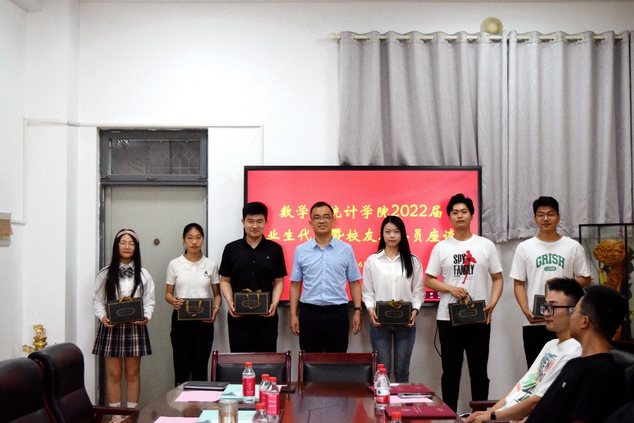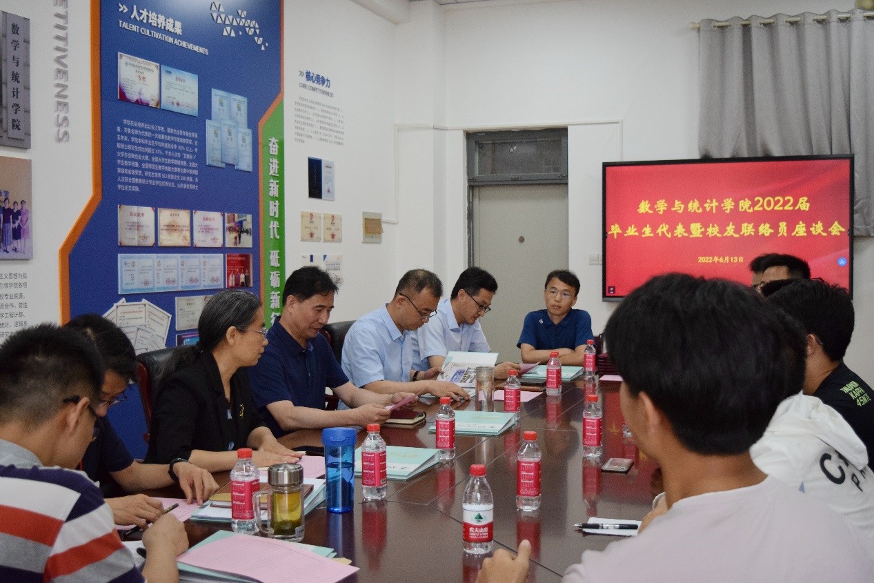 6月13日,数学与统计学院2022届毕业生代表暨校友联络员座谈会于文渊楼B115举行,学院领导班子成员、部分辅导员以及12位校友联络员代表参与座谈会,会议由院党委副书记刘冬梅主持。