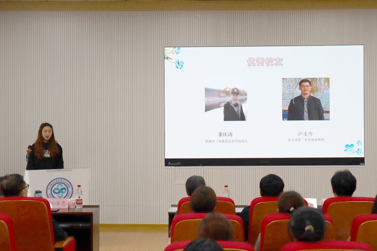 优秀队伍代表赵珉锋、冯昕怡等依次上台分享访谈成果。她们从优秀校友的求学经历、突出成就及校友对母校的寄语等,展现了历届数苑人的风采和对母校深深的情谊,通过分享大量的珍贵照片、影像资料,勾起了在场嘉宾关于山师的美好回忆,也为今后的校友工作做了有益的铺垫。