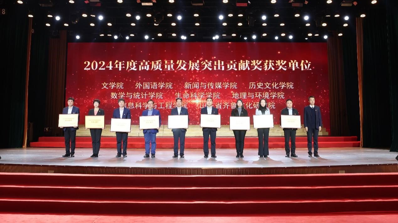 1月11日上午,学校隆重举行了2024年度高质量发展总结表彰大会,数学与统计学院荣获2024年度高质量发展“突出贡献奖”。这不仅代表了学院在推动学校高质量发展方面所取得的突出成绩,更是对全院师生一年来辛勤付出和共同努力的肯定。