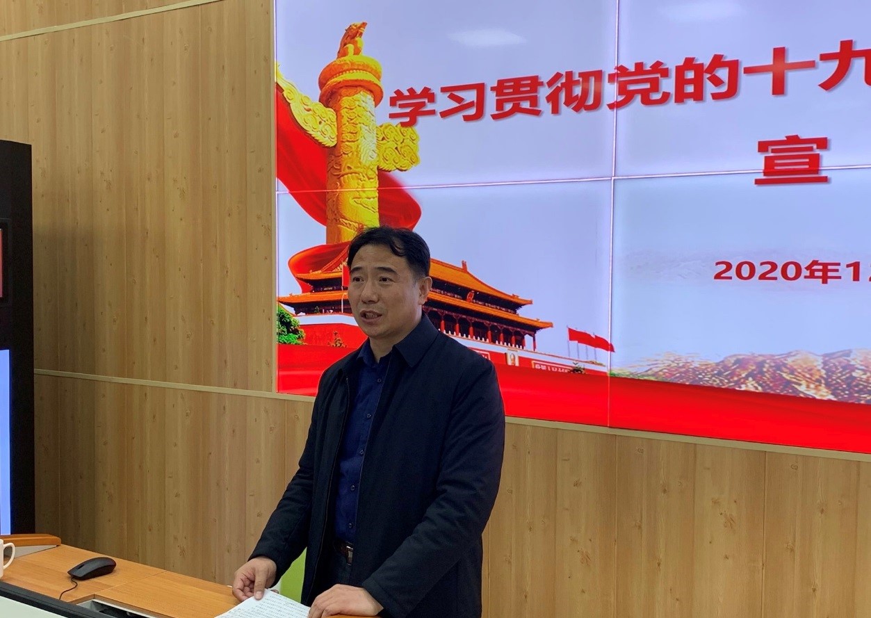 12月1日下午,学校党的十九届五中全会精神宣讲团成员、化学化工与材料科学学院党委书记王金山于长清湖校区文渊楼B区434教室作宣讲报告。学院部分教职工党员和学生党员到场聆听。报告会由学院党委书记战秉聚主持。