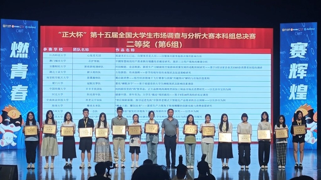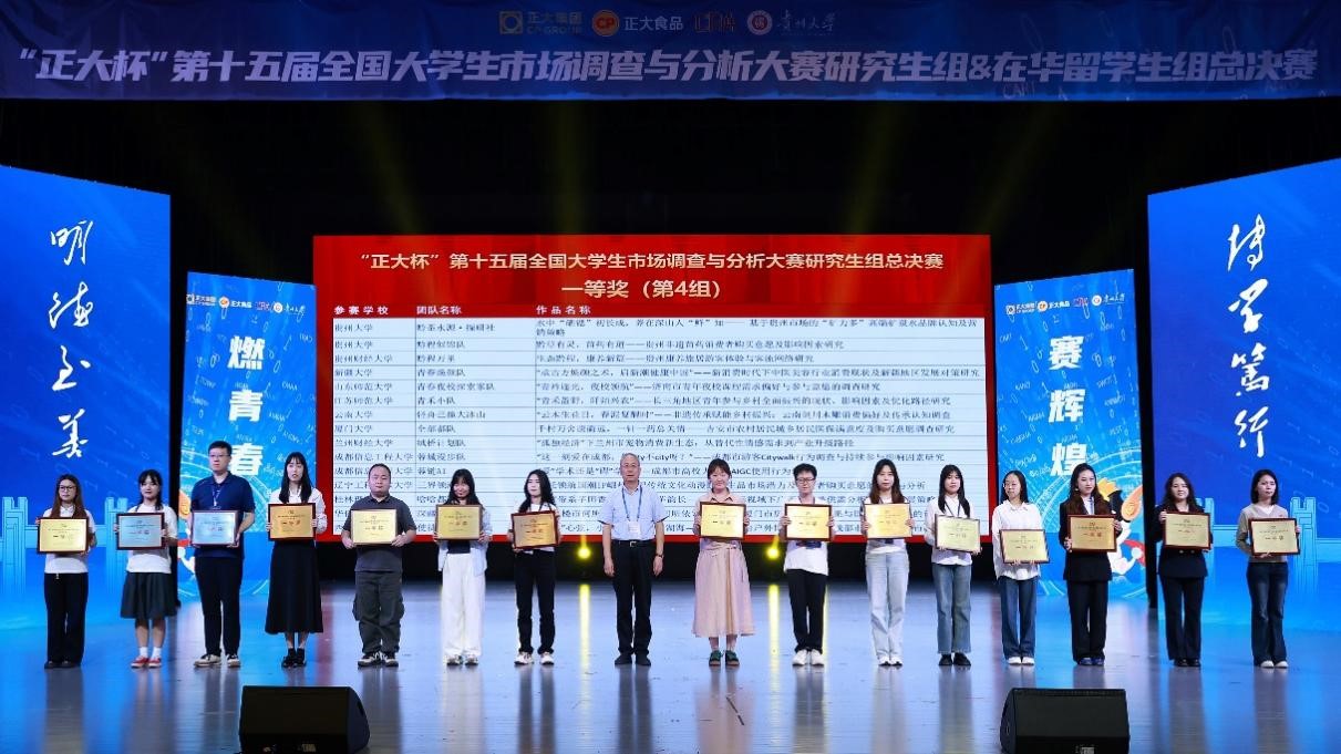 在5月25日闭幕的“正大杯”第十五届全国大学生市场调查与分析大赛中,数学与统计学院参赛队伍表现优异,斩获研究生组国家一等奖与本科组国家二等奖,实现学院在该赛事中的历史性突破。