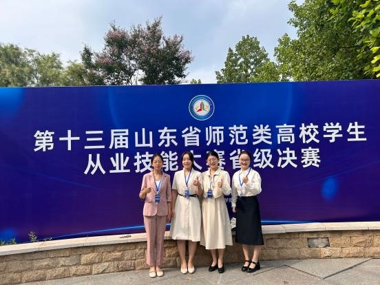 山东省师范类高校学生从业技能大赛由山东省教育厅主办,是山东省内规模最大、影响最广的师范技能赛事,全省六十余所高校的一千余位师范类学生参加了大赛决赛。本届大赛赛制有较大调整,取消固定题目,随机题目模拟授课,仅使用黑板板书辅助授课,不使用PPT,更加凸显了对选手基本素养及专业能力的考验。经过激烈角逐,大赛经过了学院选拔、学校选拔、省级预赛、省级决赛等多个阶段,学校、学院领导大力支持赛事准备,为参赛选手配备指导教师团队,提供专用比赛训练室。指导教师以线上及线下多种方式对参赛选手一对一指导,以具体案例为抓手,启发选手思考一般教学设计问题。参赛选手精心构思几十个主题的教学设计并模拟授课,在不懈坚持中挑战自我。
