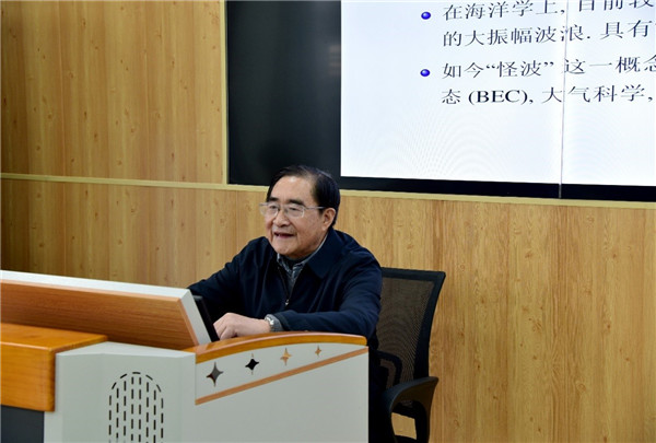 郭柏灵院士首先从历史上有名的“怪波事件”切入,介绍了怪波的研究进展情况和“光学怪波”、“水槽怪波”两个重要的怪波实验。接着,讲解了Benjamin-Ono方程的物理背景及其怪波解,主要内容包括Benjamin-Ono方程及其孤立解的推导,底层方程和上层方程,方程的守恒律、定常行波以及BO方程理论研究进展。最后,郭柏灵院士认真仔细地回答了参会师生提出的学术问题。