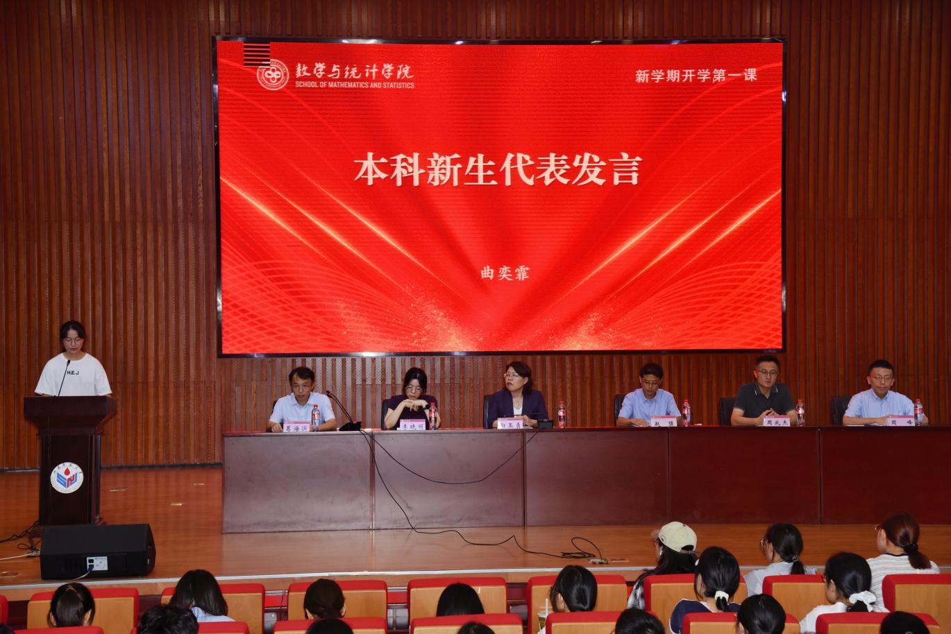 2025级本科新生代表、数学与应用数学公费师范生曲奕霏代表全体新生表达了对大学生活的憧憬与期待,表示将以饱满的热情投入到未来的学习中,努力成长为一名合格的可靠之材。