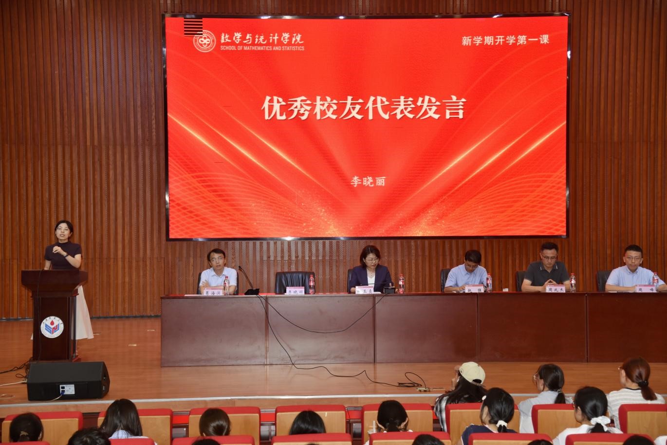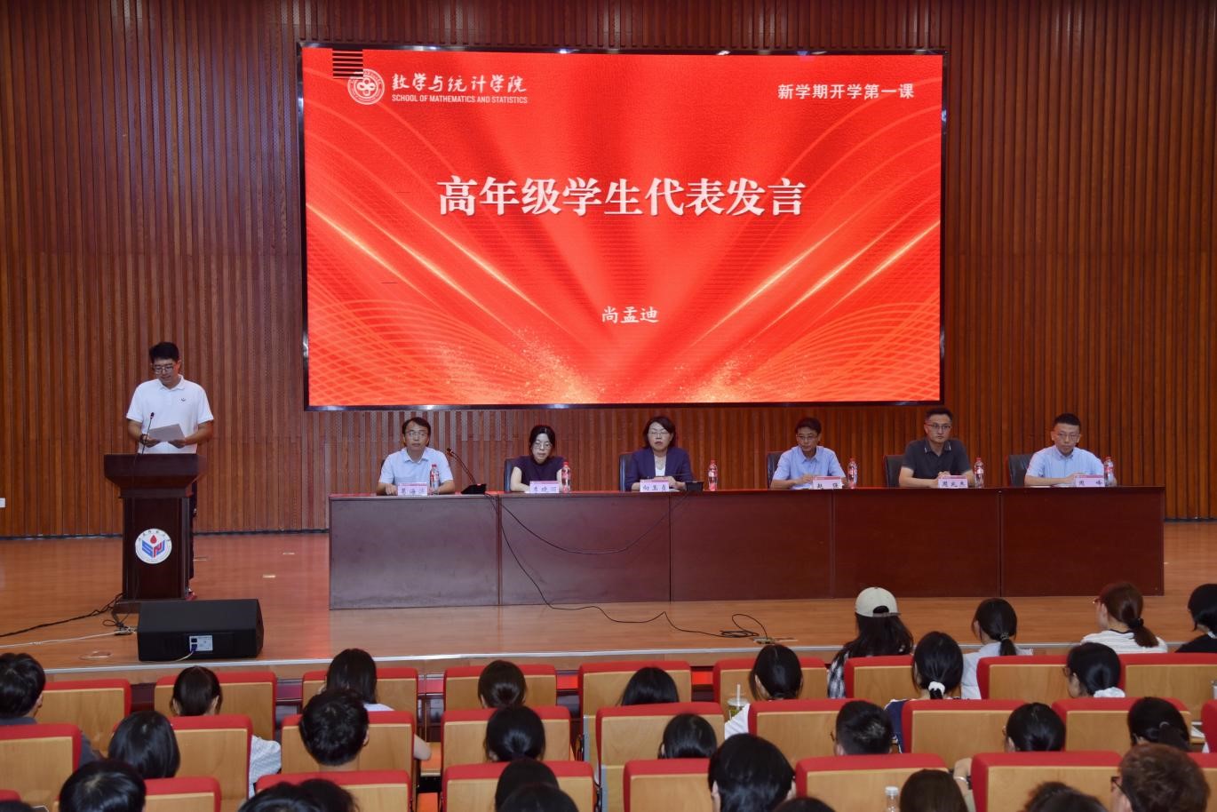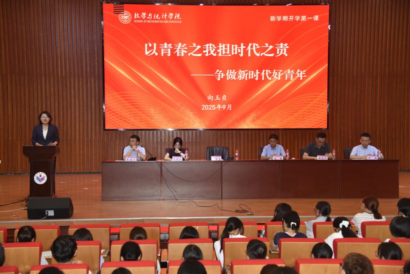 9月12日,数学与统计学院举行2025级本科新生见面会。优秀校友代表、山东大学李晓丽教授,学院教师代表、全国五一劳动奖章获得者周峰教授,学院党委书记向玉贞,党委副书记、执行院长赵强,副院长周兆杰,各年级辅导员及2025级本科新生共同参会。会议由学院党委副书记、纪委书记葛海滨主持。