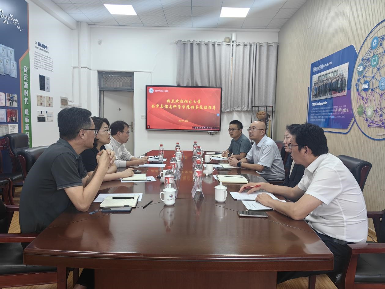 9月25日,烟台大学数学与信息科学学院党总支书记张寅晗、院长陈传军、副院长王广富及院长助理李凯强一行莅临我院,开展交流座谈。我院党委书记向玉贞,党委副书记、纪委书记葛海滨,副院长周兆杰、党政办公室主任武海蓬参加会议。双方聚焦学科建设、科学研究、党建工作等领域展开了深入且富有成效的深度交流。