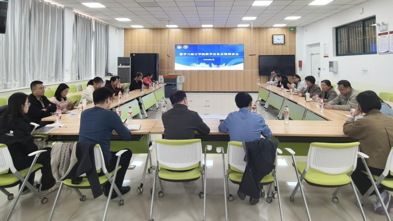 4月2日,数学与统计学院在长清湖校区文渊楼B434、B408会议室举办教师教学信息反馈座谈会。学院党委书记向玉贞,执行院长赵强,党委副书记、纪委书记葛海滨,副院长刘红星出席会议,部分专业课教师、本科生辅导员参加会议。