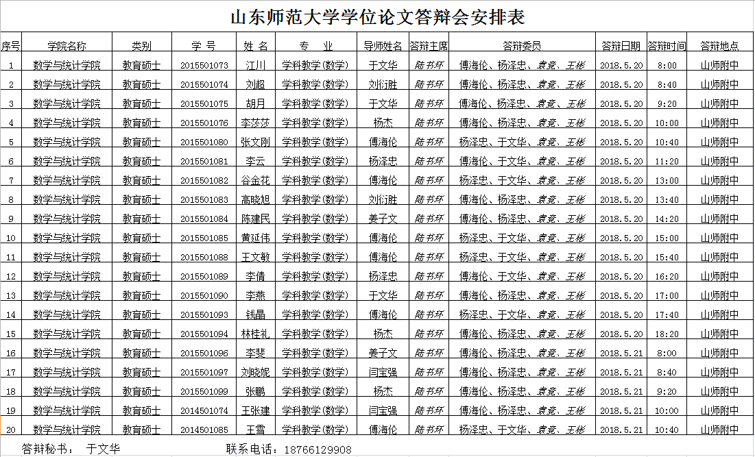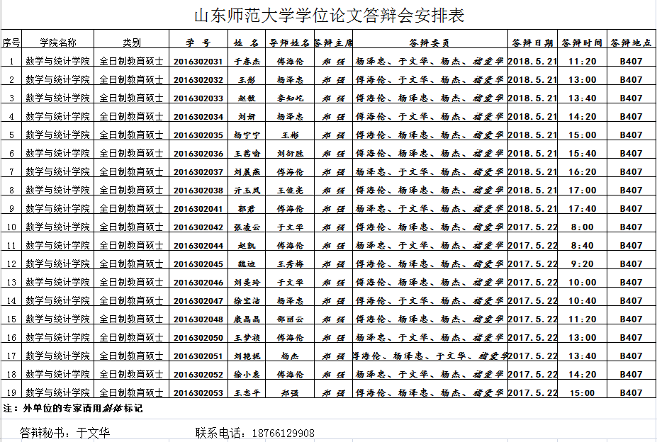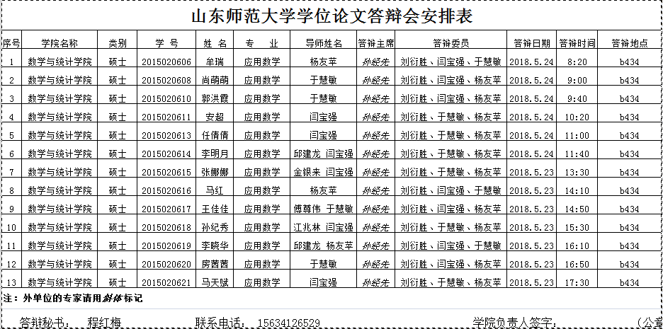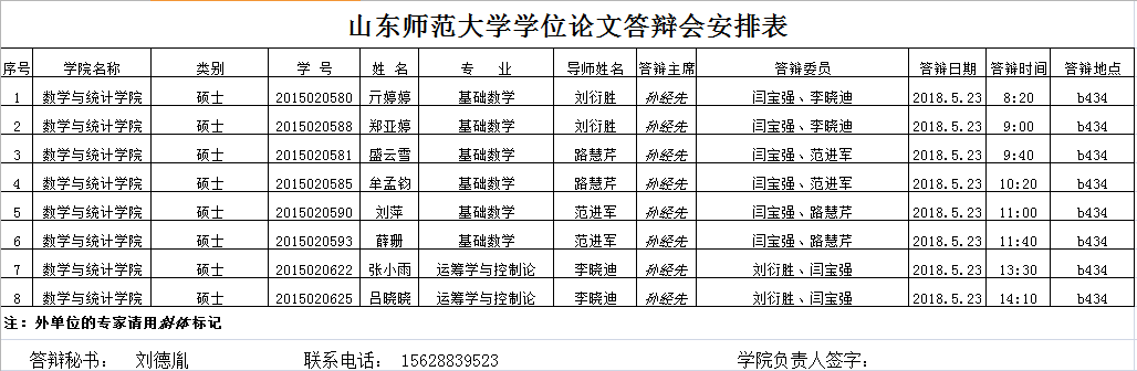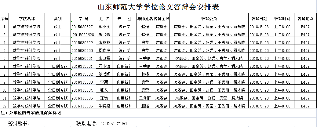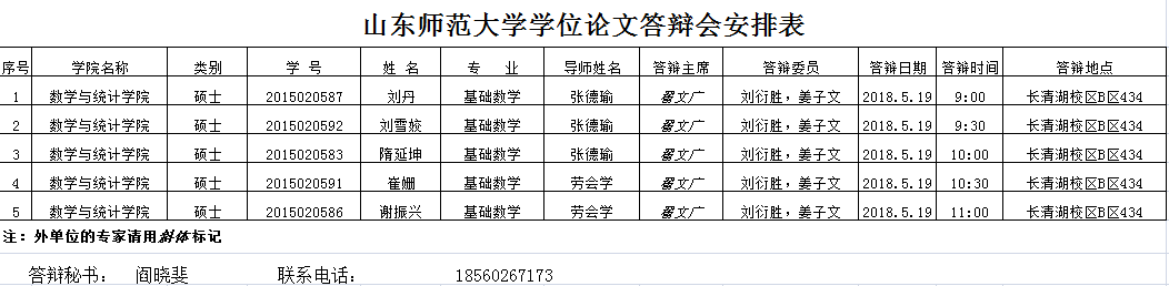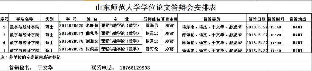 2018届硕士研究生毕业论文答辩安排