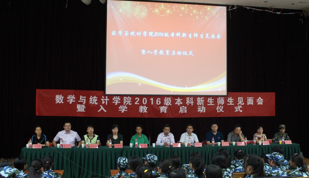 9月14日,数学与统计学院于长清湖校区综合教学楼C区101报告厅举行2016级新生师生见面会暨入学教育启动仪式。学院领导班子成员、各系(部、中心)主任、教师代表、辅导员老师及2016级519名新生参加了此次见面会。会议由学院党委副书记刘冬梅主持。