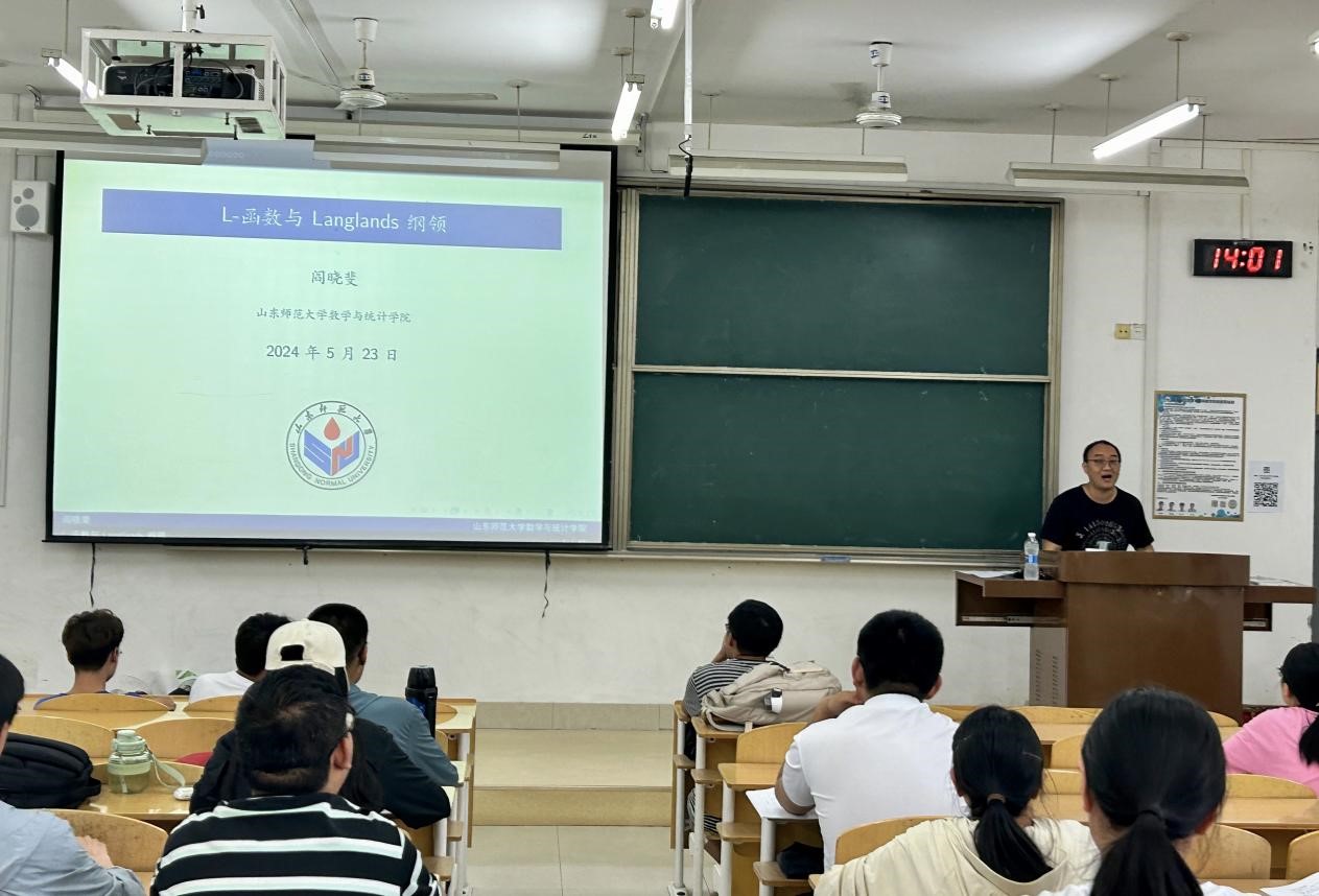 5月23日,数学与统计学院于文渊楼B102教室举办数学前沿论坛之“L-函数与朗兰兹纲领”主题讲座。阎晓斐副教授(我院硕士研究生导师,主要从事数论方向研究)受邀担任本次主讲老师,学院部分本科生参加讲座。