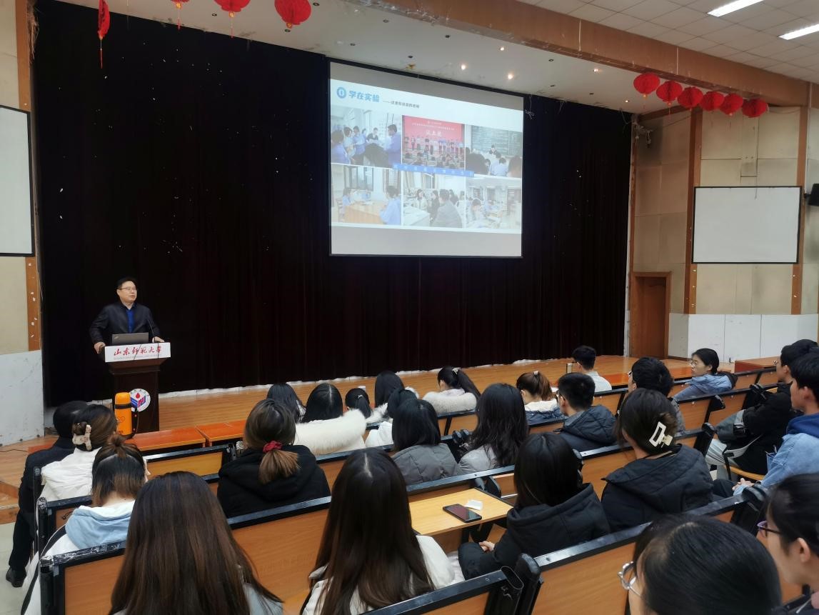12月6日,山东省实验中学党委委员、东校校长、济南新航实验外国语学校执行校长、学院优秀校友林宝磊受邀为学院2019级师范生作了题为《优秀班主任“三气”“五心”“八个意识”》的报告。学院副院长赵强主持报告。