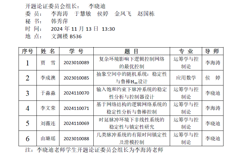 2024.11.13数学与统计学院2024年博士研究生开题公告