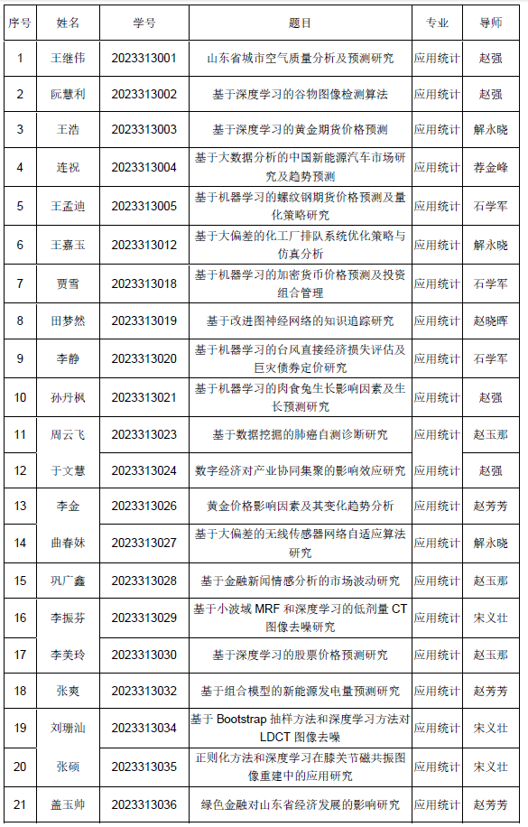 2024.11.07数学与统计学院2023级应用统计专业研究生学位论文开题公告