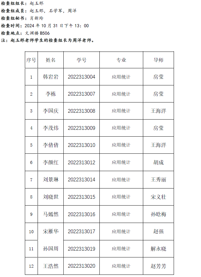 2024.10.31数学与统计学院2022级应用统计专业硕士学位论文中期检查公告