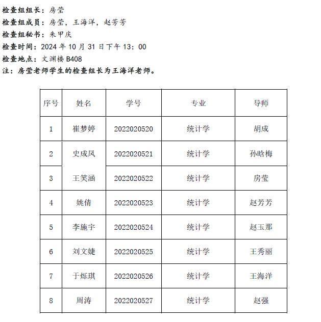 2024.10.31数学与统计学院2022级统计学专业研究生学位论文中期检查公告
