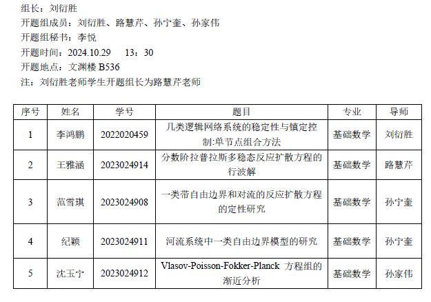 2024.10.29数学与统计学院2023级基础数学专业研究生开题公告