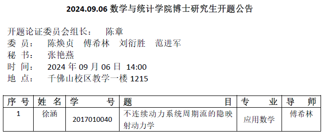 2024.09.06数学与统计学院博士研究生开题公告
