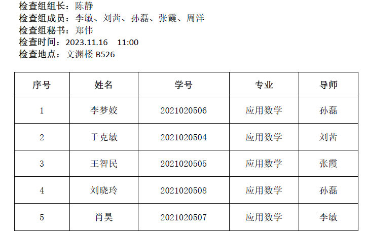 2023.11.16数学与统计学院2021级应用数学专业(图论组合优化方向)研究生学位论文中期检查公告