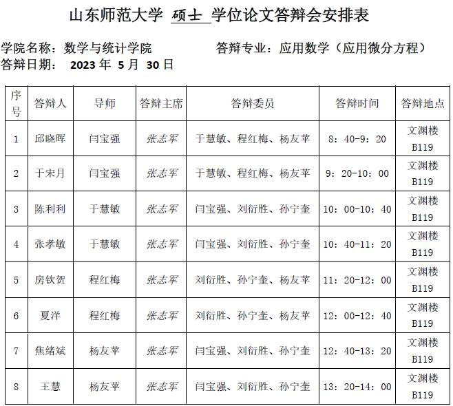 2023.5.25数学院2023届应用数学专业硕士研究生答辩公告