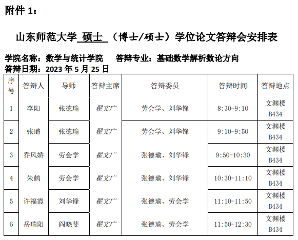 2023.5.25数学与统计学院2023届基础数学(解析数论方向)博士研究生答辩公告