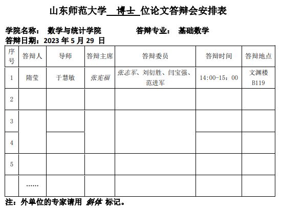 2023.5.24数学与统计学院2023届统计学硕士研究生答辩公告