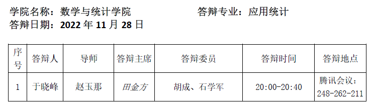 2022.11.28数学与统计学院2020级应用统计专业硕士研究生答辩公告