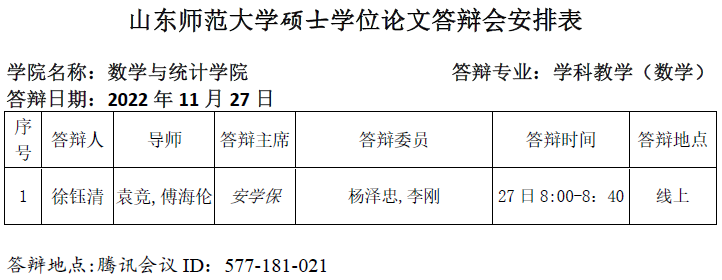 2022.11.27数学与统计学院2022届学科教学(数学)专业硕士研究生答辩公告