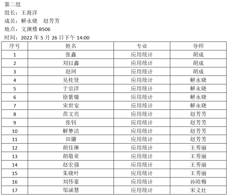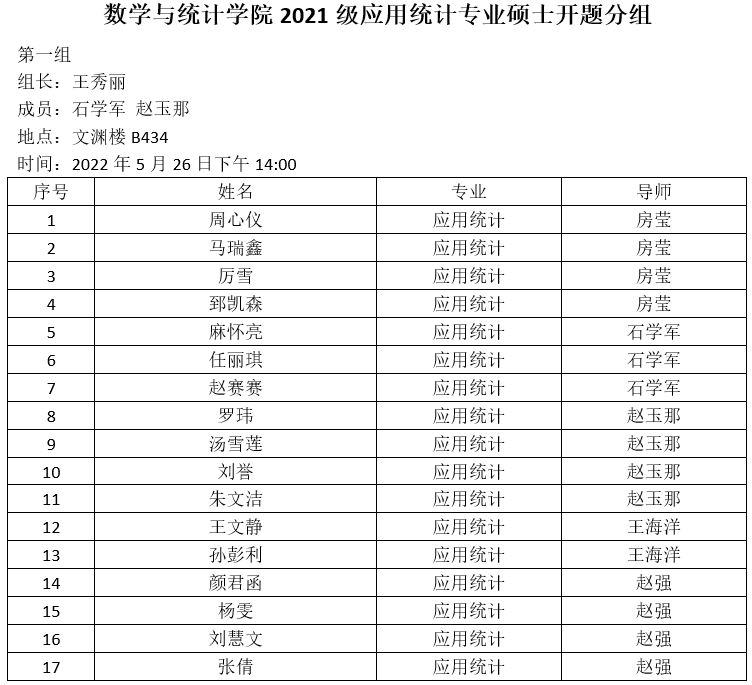 2022.5.26数统学院2021级应用统计专业硕士研究生开题公告