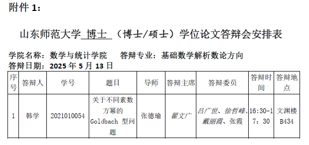 2025.5.13数学与统计学院2025届基础数学(解析数论方向)博士研究生答辩公告