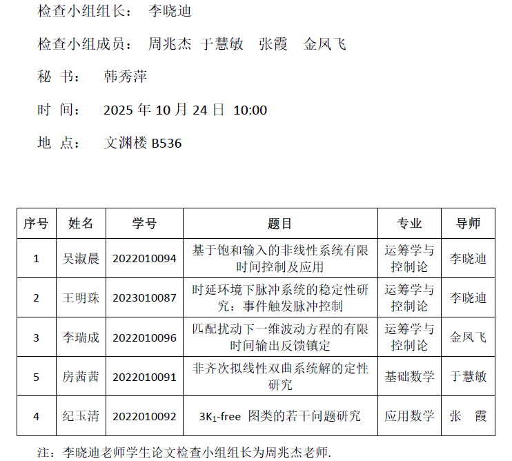 2025.10.29数学与统计学院2023级基础数学专业硕士研究生毕业论文中期检查公告