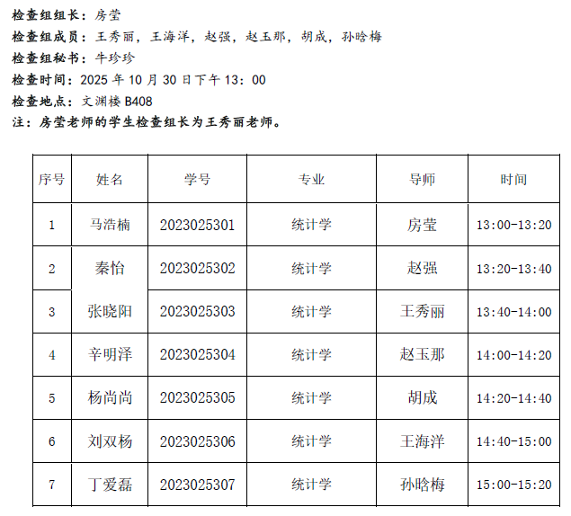 2025.10.30数学与统计学院2023级应用统计专业硕士学位论文中期检查公告(第一组)