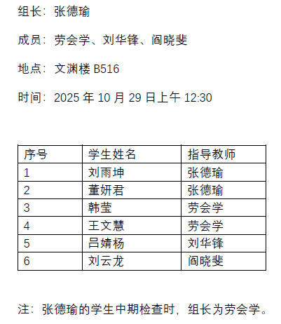 2025.10.29数学与统计学院2023级基础数学专业硕士研究生毕业论文中期检查公告