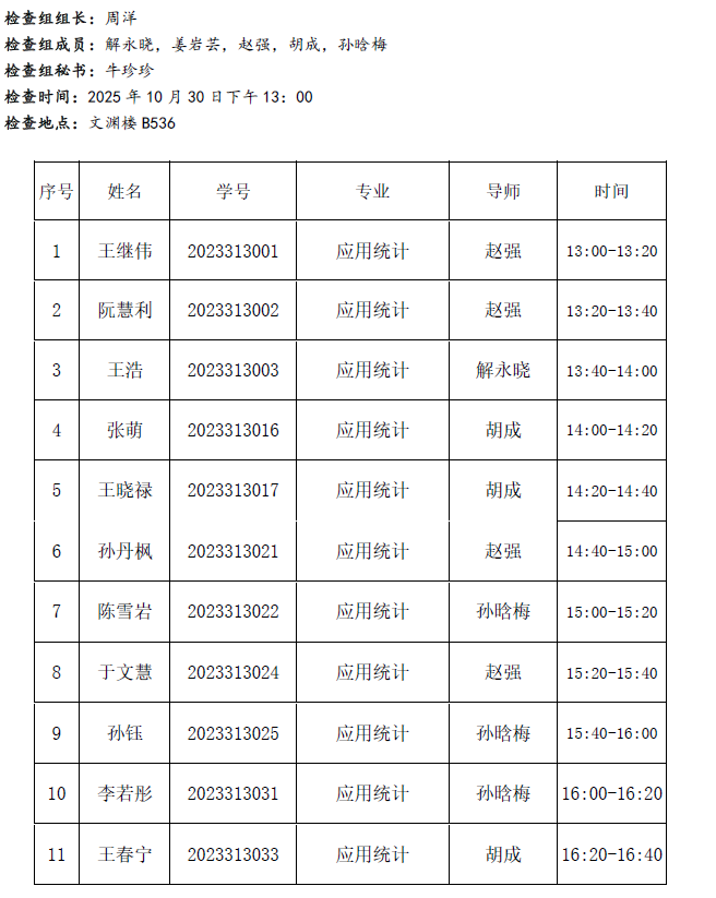 2025.10.30数学与统计学院2023级应用统计专业硕士学位论文中期检查公告(第二组)