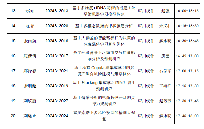 2025.11.06数学与统计学院2024级应用统计专业研究生学位论文开题公告(第二组)