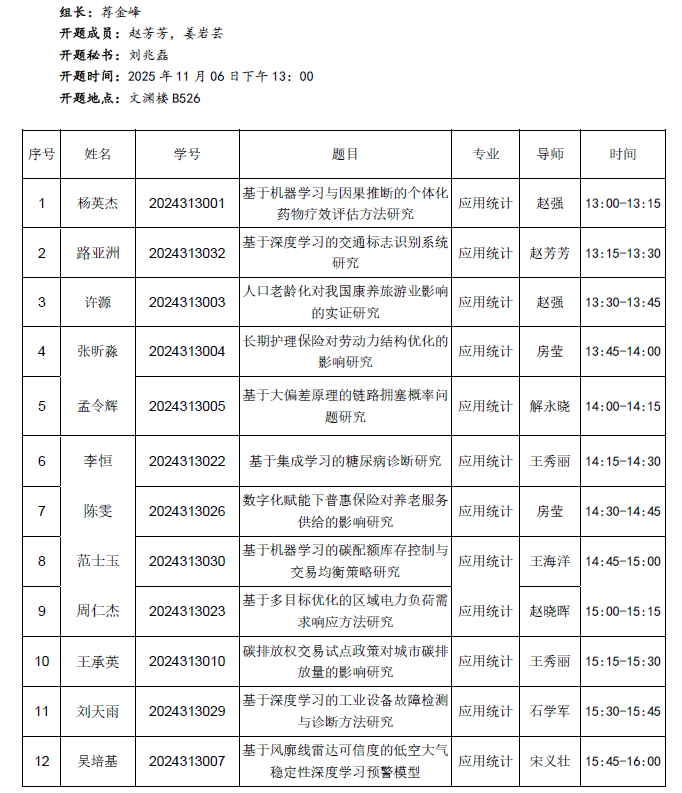 2025.11.06数学与统计学院2024级应用统计专业研究生学位论文开题公告(第一组)