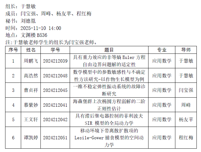 2025.11.10数学与统计学院2024级应用数学专业(微分方程方向)研究生学位论文开题公告
