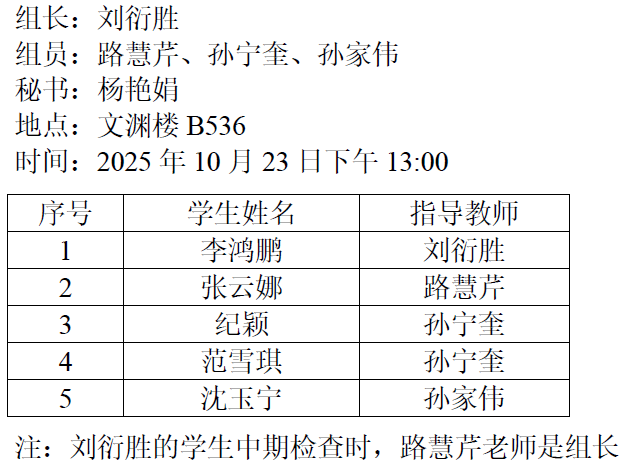 2025.10.23数学与统计学院2023级基础数学专业(微分方程方向)硕士研究生论文中期检查公告