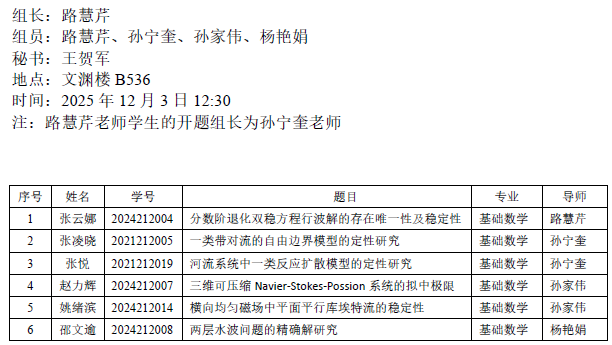 2025.11.3数学与统计学院2024级基础数学专业(非线性微分方程方向)硕士研究生论文开题公告