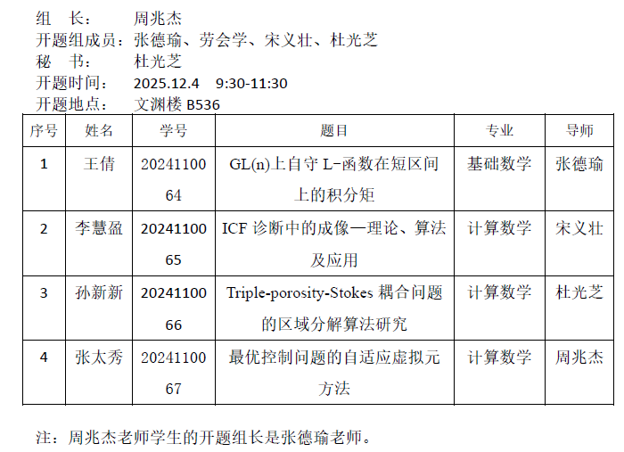 2025.12.4数学与统计学院2024级博士生开题公告