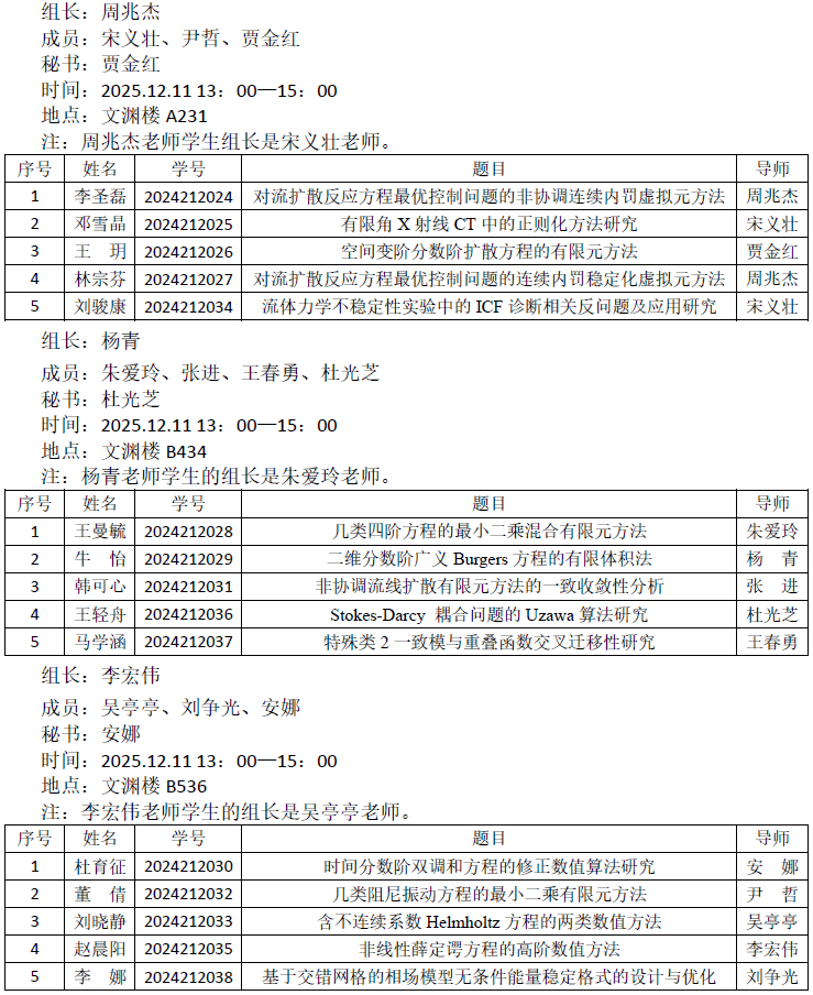 数学与统计学院2024级计算数学专业研究生开题公告