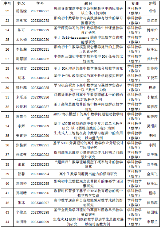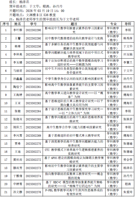 2026.03.19数学与统计学院2023级学科教学(数学)专业硕士研究生学位论文预审公告