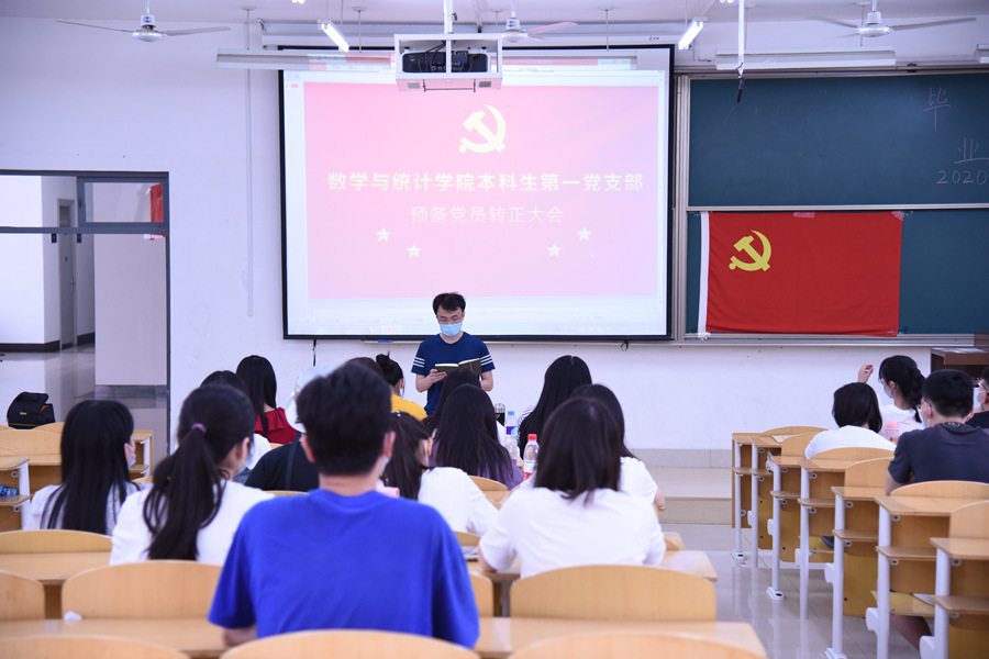 6月15日,数学与统计学院本科生第一党支部在B103教室召开预备党员转正大会,会议由党支部书记葛海滨主持。