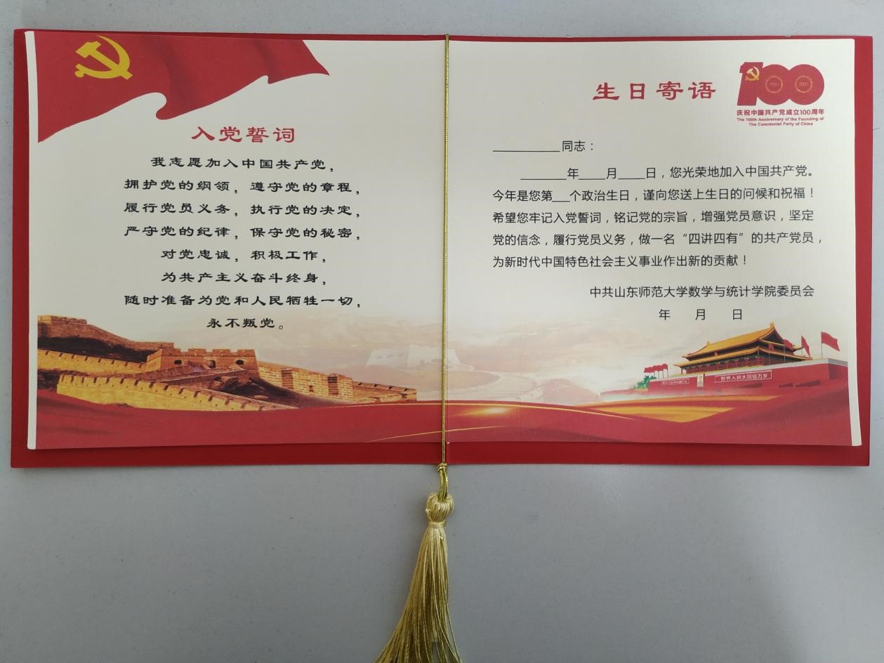 活动中,每位毕业生党员都收到了一份精心印制的政治生日贺卡,政治生日贺卡左侧印有入党誓词,右侧印有党员姓名和入党时间。党组织在为党员送上政治生日的问候与祝福的同时,还希望他们铭记庄严的承诺,牢记党员的政治责任,坚定党的信念,履行党员义务,充分发挥党员的先锋模范作用,为新时代中国特色社会主义事业做出积极贡献。