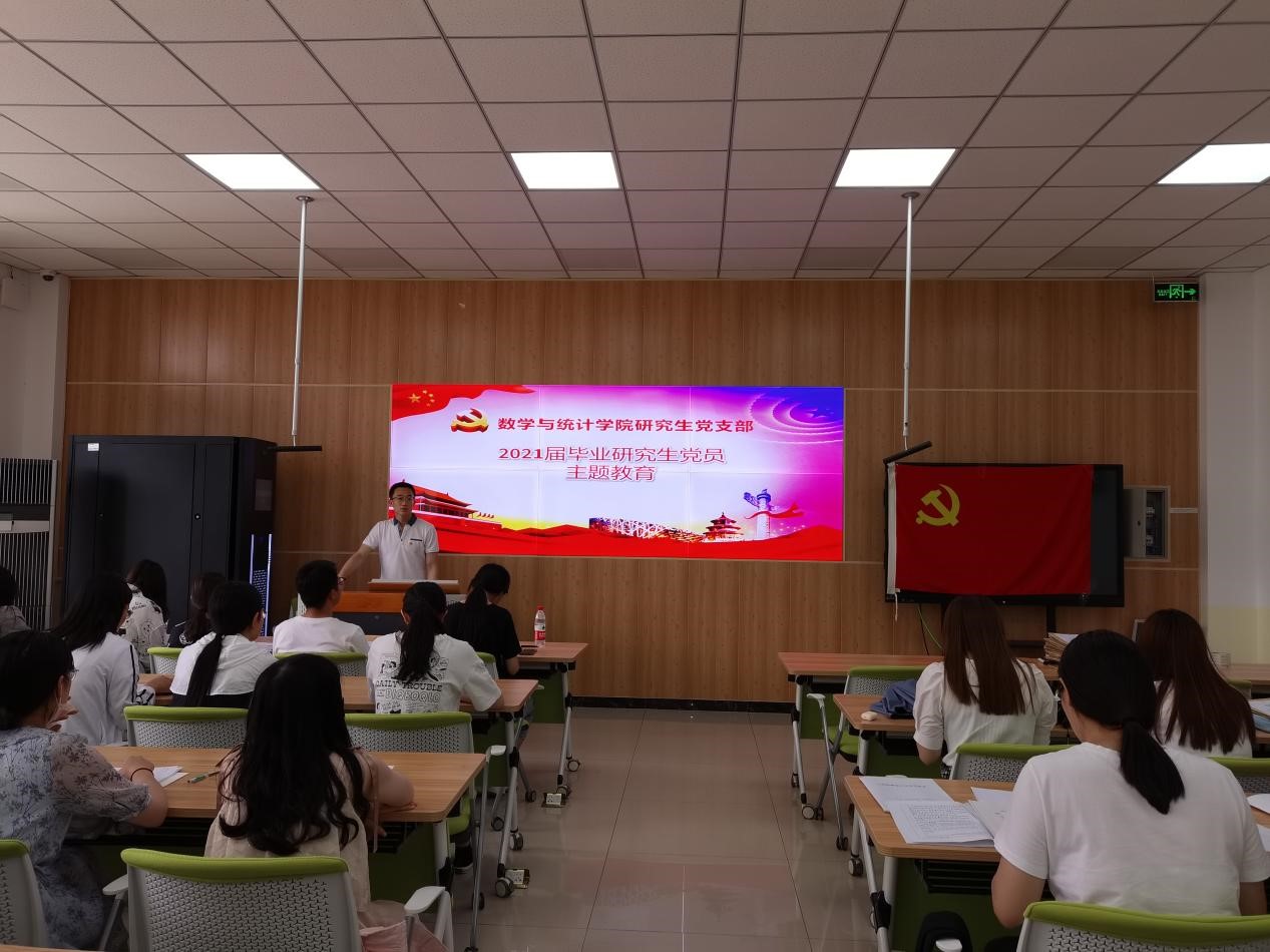 为加强毕业研究生党员教育,引导研究生党员进一步发挥党员先锋模范作用,做好文明离校、安全离校、奉献社会的表率,数学与统计学院研究生党支部于6月3日在文渊楼B434举办了2021届毕业研究生党员主题教育活动,40余名毕业研究生党员参与了本次活动。