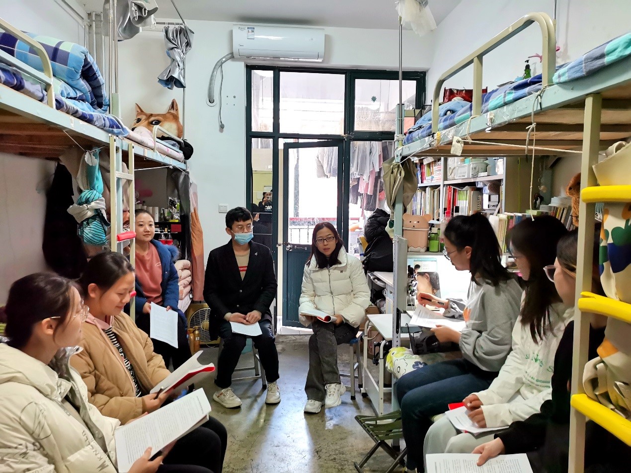 党支部创新工作思路,在集中学习基础上,为进一步加强学习交流,提高党员身份认知度,党支部书记刘菊带领2018级辅导员张世桢、2019级辅导员韩傲分组走访了学生党员宿舍,进一步落实党员学习情况。走访过程中,老师们与学生党员进行亲切的交流互动,了解了各位党员近期在学习和生活等方面的情况,强调作为学生党员要以习近平新时代中国特色社会主义思想为指导,以身作则,在进取中突破,与挫折中奋起,从总结中提高,充分发挥党员的先进性,在新时代新征程上展现新气象新作为。党员同志也表示会继续加强学习十九届六中全会会议精神并做好学习笔记,在今后的学习生活中发挥党员模范带头作用,多做好事做实事,积极带动身边同学进步。